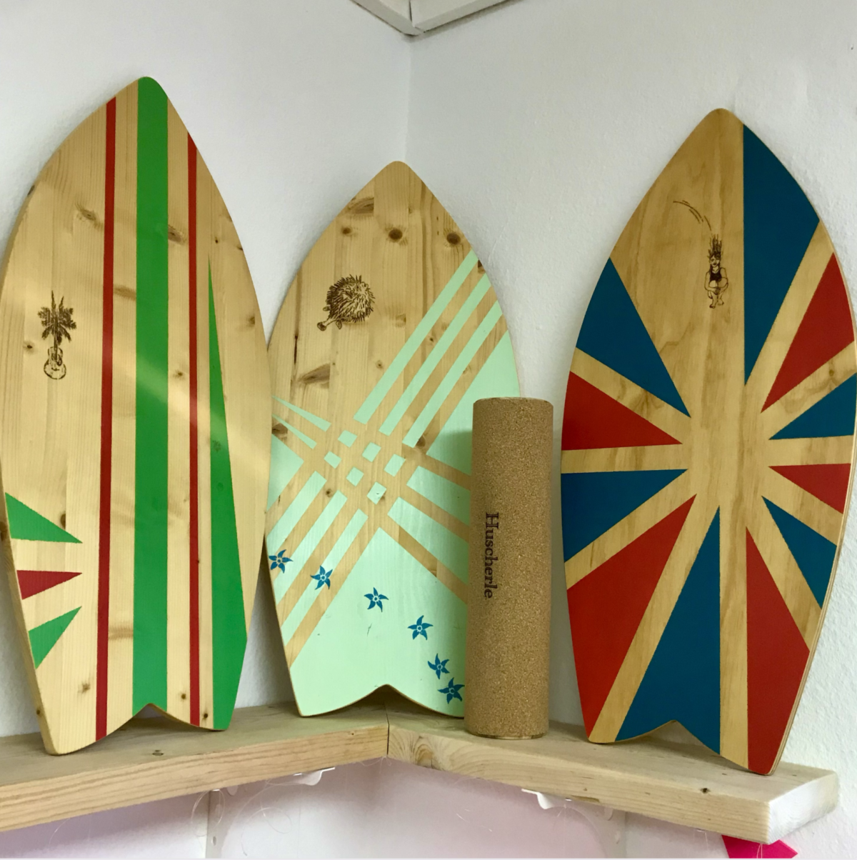 Bild 8: Balance-Board “Huscherle”. Nicht nur in der Coronazeit die perfekte Möglichkeit, zuhause anspruchsvollen, abwechslungsreichen Sport zu treiben. Zum Huscherle gehört eine bodenschonende, korkummantelte Holzrolle. Sie ist empfohlen ab 8 Jahren und ist bis 95kg getestet.