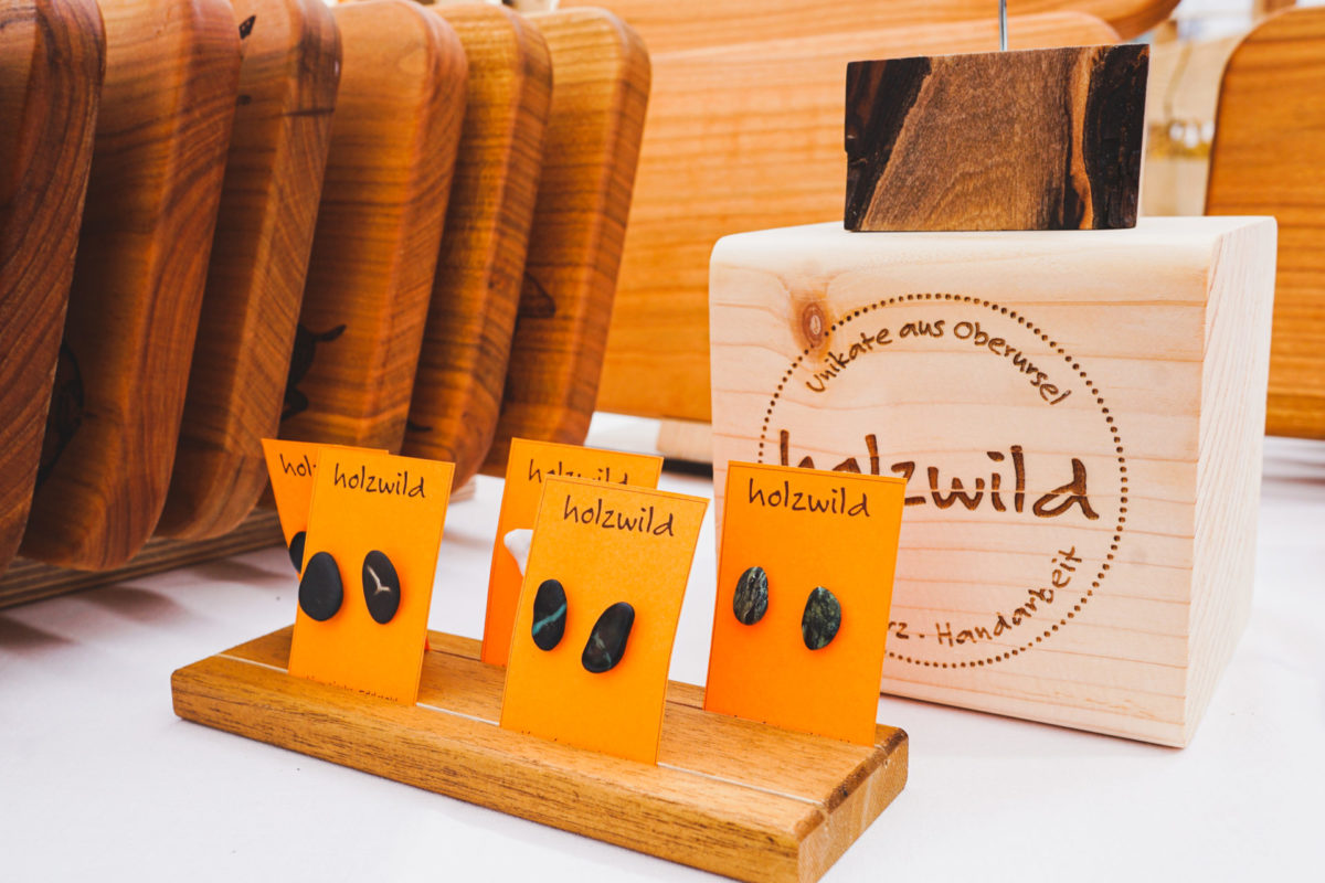 Ohrringe aus Holz oder Strandsteinen, selbstgemachte Feinkost aus eigenem, unbehandeltem Anbau, Epoxykunst, Brettchen aus Massivholz mit Lasergravur und Holzfliegen für Sie&Ihn… an meinem Stand gibt es immer Neues zu entdecken.