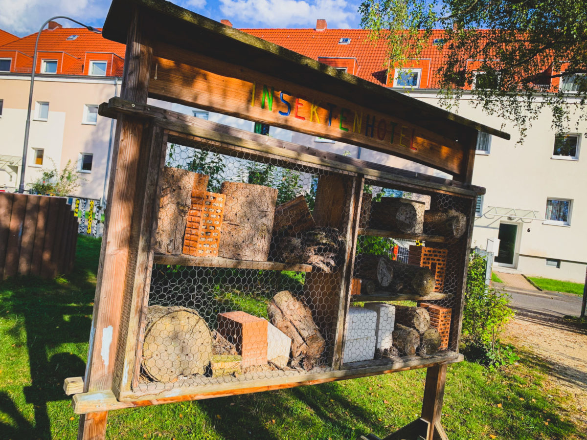 Klettergerät mit Rutsche, Sandfläche, Schaukel, Basketballkörbe, Kletterelement, Sitzschaukel, Nestschaukel, Insektenhotel