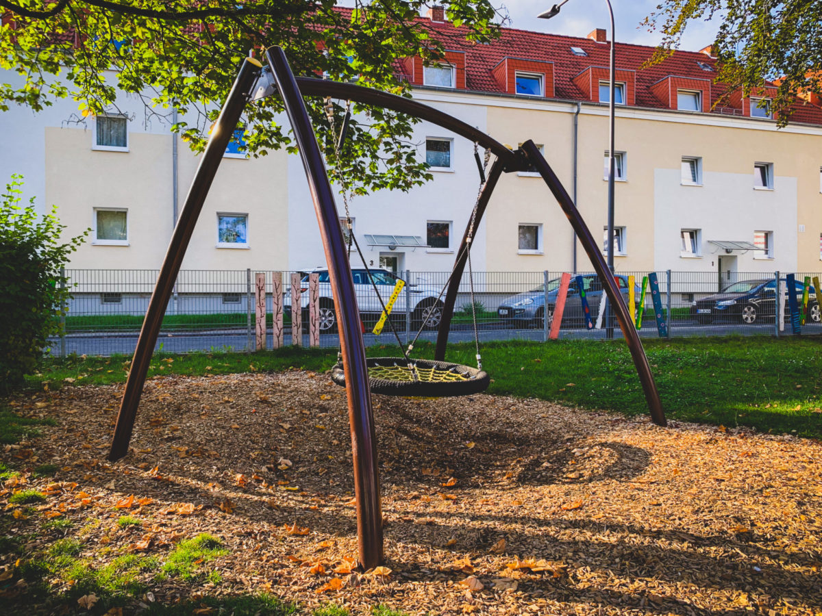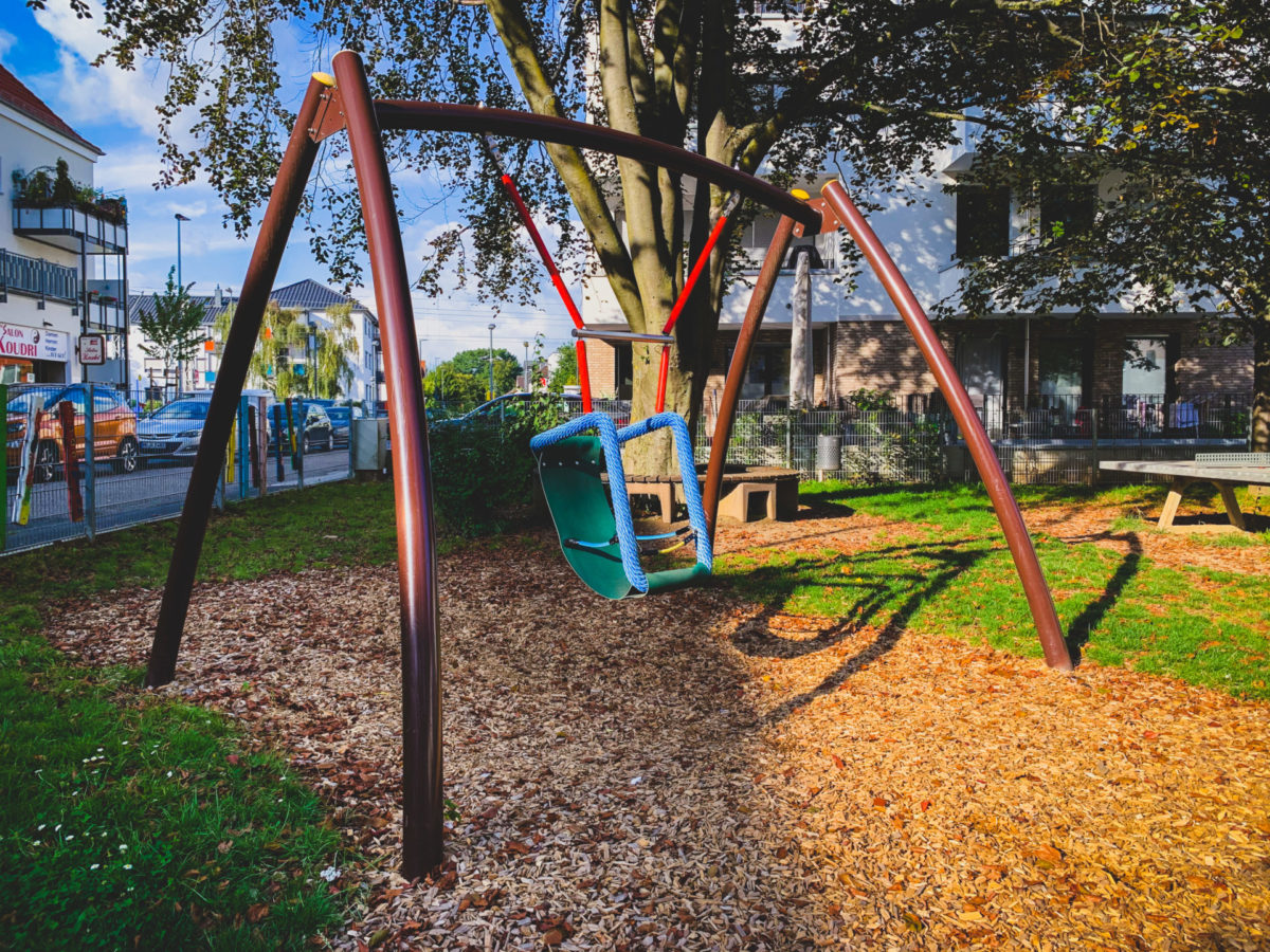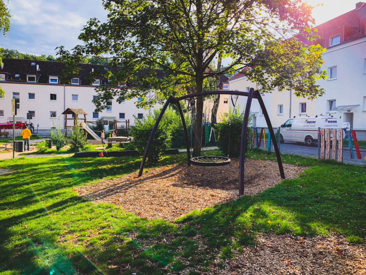 Der Spielplatz ist sehr groß und bietet viele neue und moderne Spielgeräte.