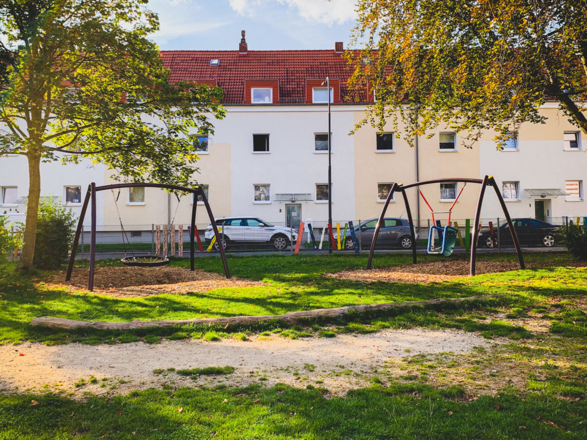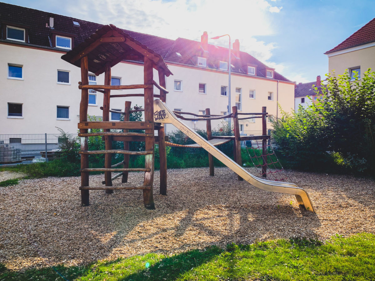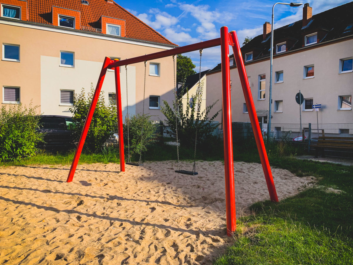Der Spielplatz ist sehr groß und bietet viele neue und moderne Spielgeräte.